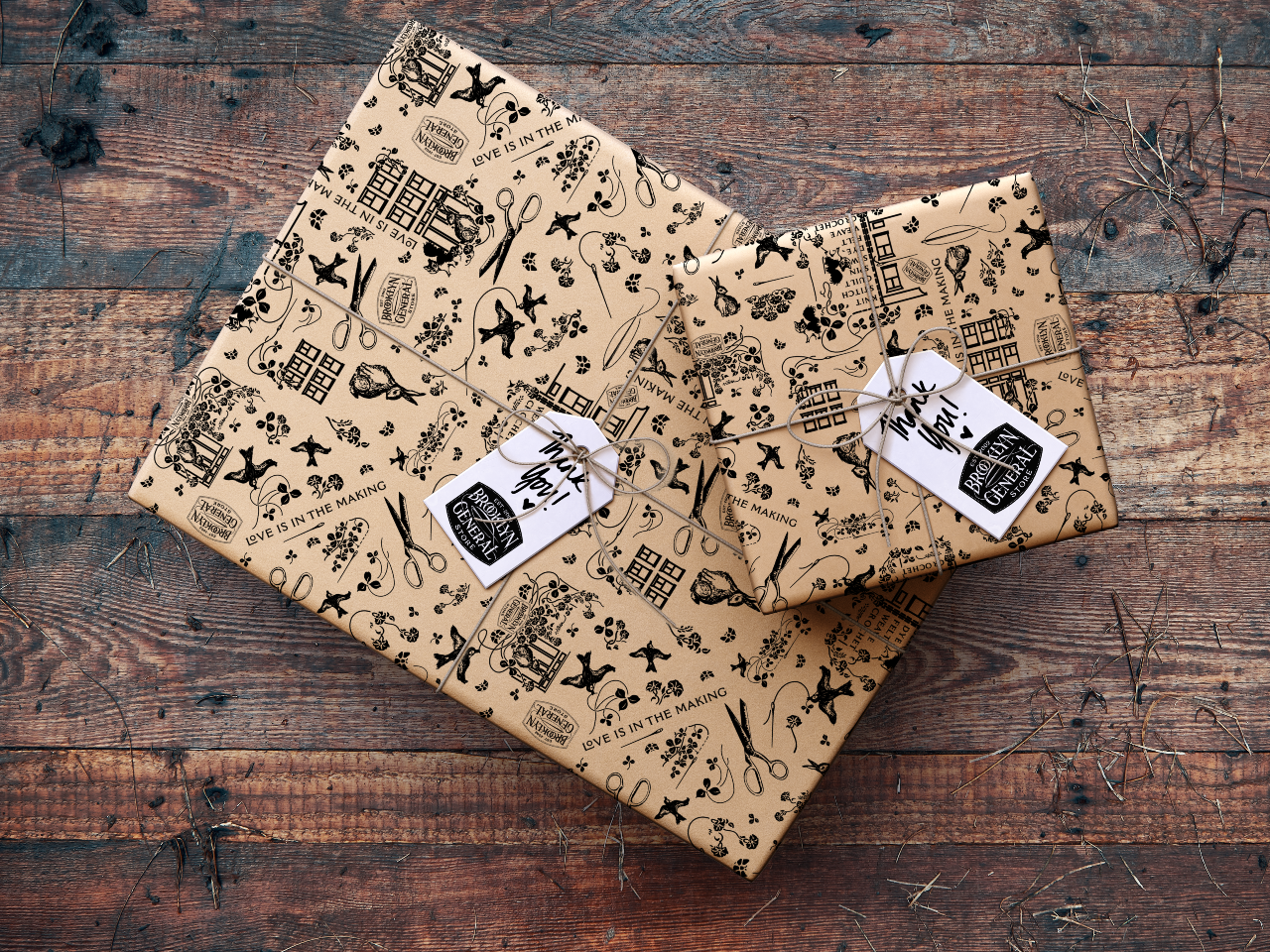 I put myself through design school by working at a boutique craft store in Brooklyn named Brooklyn General Store. The store itself is located in a hundred-year-old building in Carroll Gardens where there used to be a true general store. The business owner has chosen to preserve all of the original woodwork and shelving, and the brand’s visual expression follows the old fashioned theme, as you can see in the examples below.