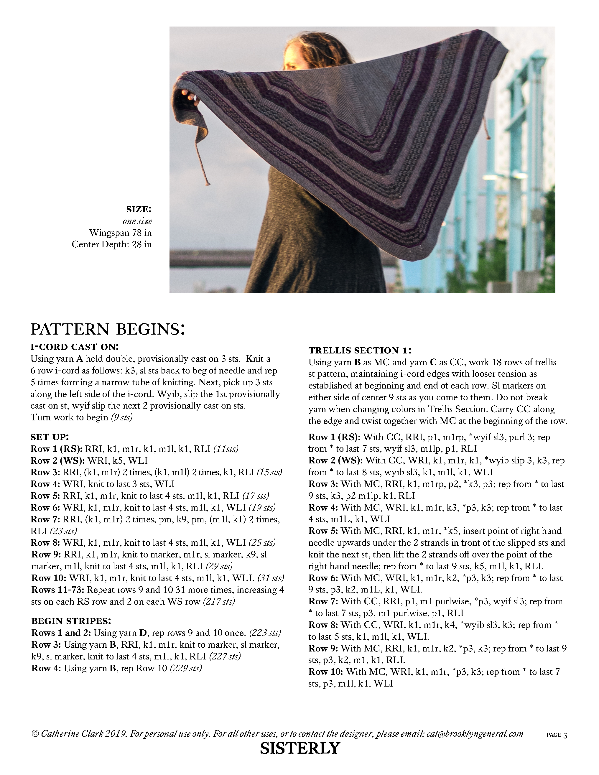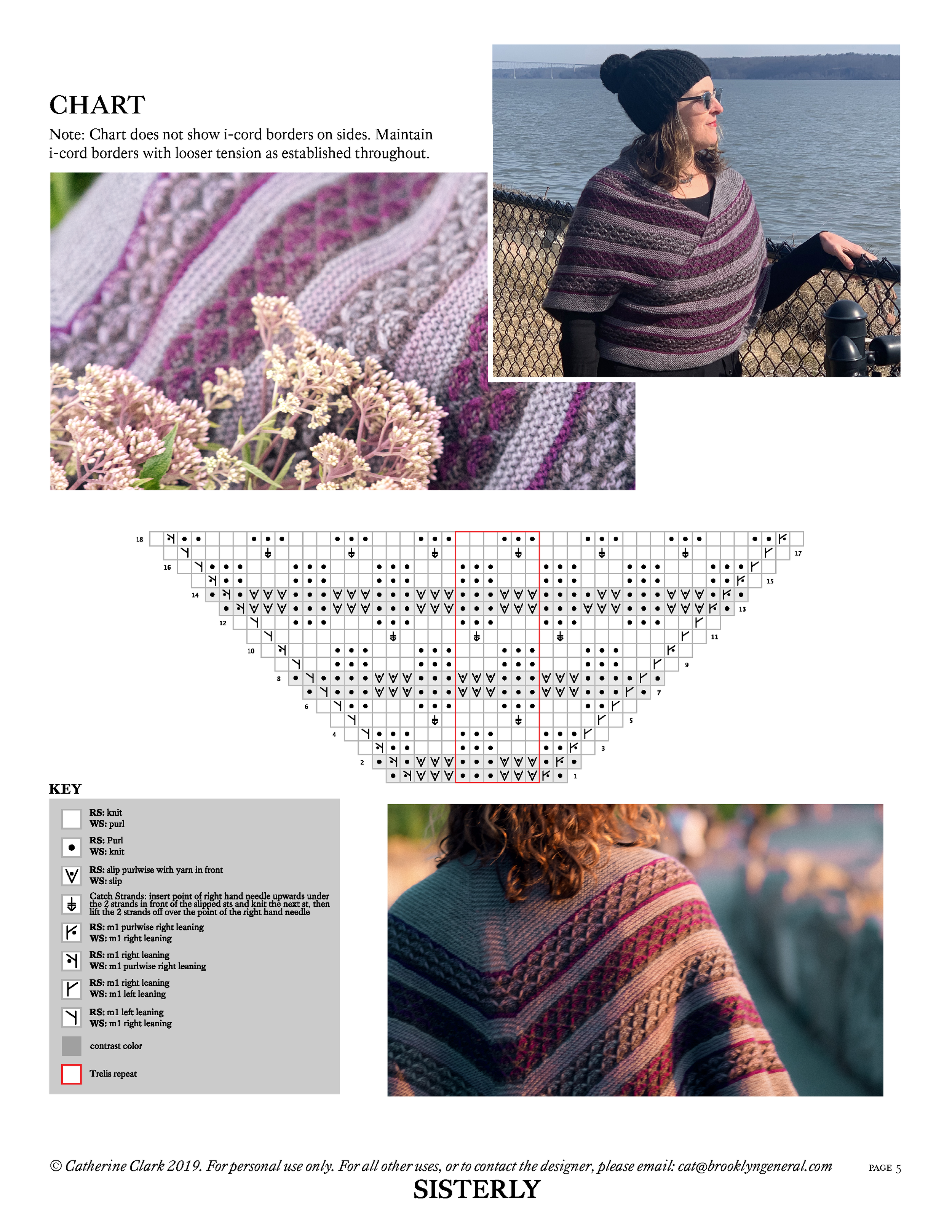 Sisterly is a knitting pattern that Brooklyn General Store owner Catherine Clark designed, and asked for my help with the pattern layout. Conventionally these patterns are sold as a pdf on the popular knitting website Ravelry. There were many technical challenges in this project with spacing, typographical heirarchies, readability, and fitting a lot of information on four pages. The project required extreme attention to detail (something I am great at) when setting the type, and line-by line scanning to make sure that the dense text and abbreviation-heavy knitting language was readable. Each new row in the pattern is bolded and starts on its own line, abbreviations are capitalized, and all stitch counts falling at the end of every row are in parentheses and italicized. There are clickable links that take the knitter straight from the pdf to helpful video tutorials, a chart to help visualize the project if you don’t want to read the pattern line by line, and a chart key. Stylistically, the design evolved from Catherine’s previously released pattern library. I was able to take her style from previous patterns and turn it into an InDesign template that she can use over and over again in the future.