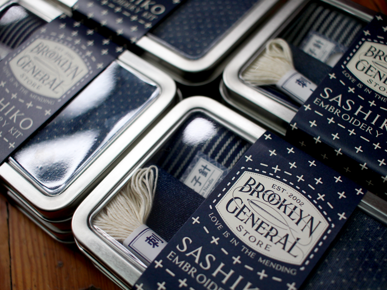 As a lover of good packaging and a crafter myself, this simple and elegant band design was a delight to create and execute. Using the existing logo and required display type, I created a label that not only fit with the aesthetic of the store, but with that of Sashiko embroidery, a craft of Japanese origin featuring intricate geometric patterning intended to make visible and beautify the art of mending. The colors on the label are taken from the contents of the kit itself, while the motifs reflect those of the conventional Sashiko stitches.