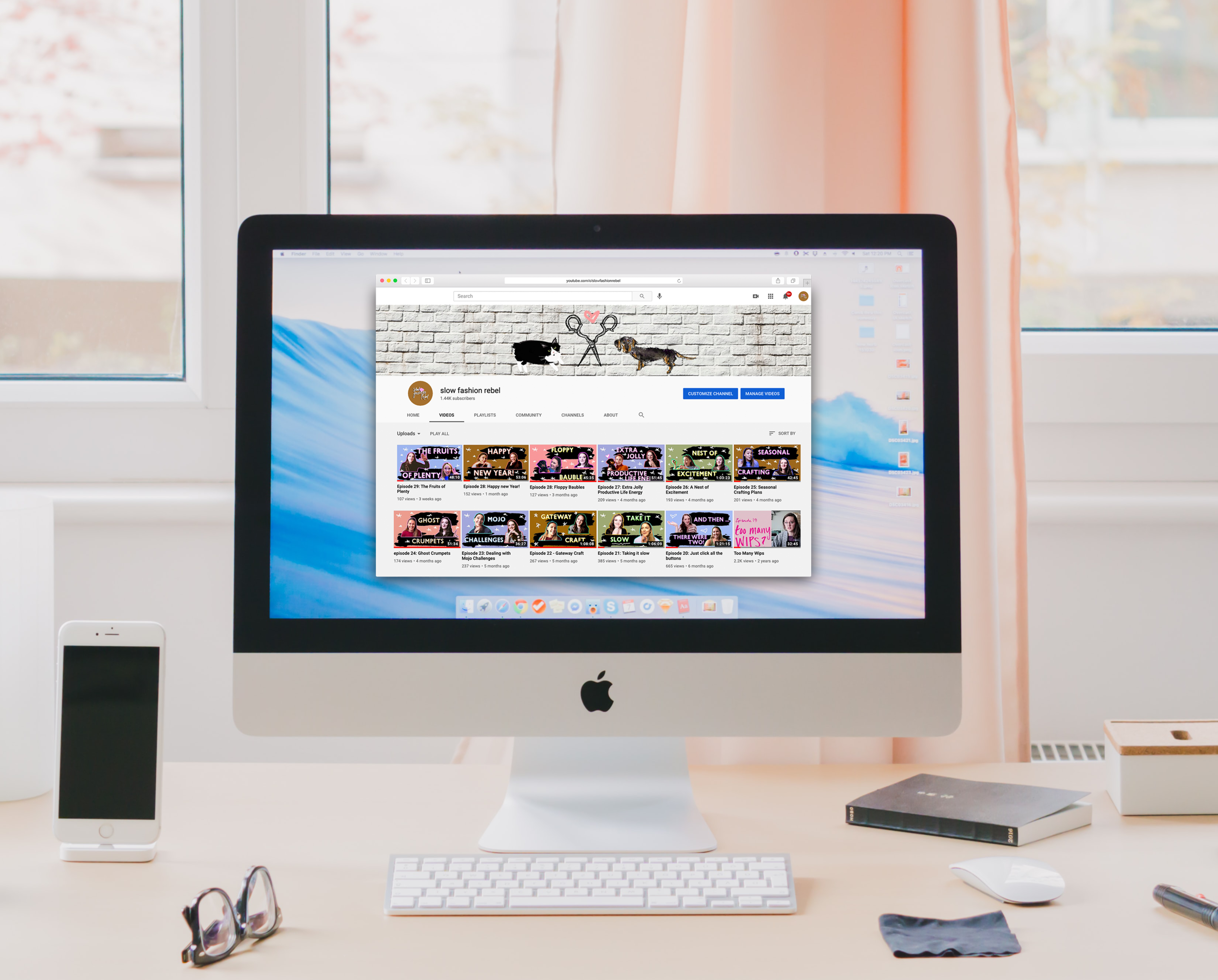 In the real world (not design school), I used this brand to promote social media content that I created myself. I wrote scripts for, filmed, and edited smart, value-driven content for the modern maker. Most of the content out there for knitters and crafters is either instructional or chatty. With my background as a professional costumer and speaking as someone raised by studio artists, provided a unique voice in the crafting niche by talking about strategies for intentional creation. It started as just me, but then my knitting friend Sophie joined me. What you see pictured left is the most recent version of the logo that I use on my Etsy shop and on YouTube, and below is our current YouTube landing page.