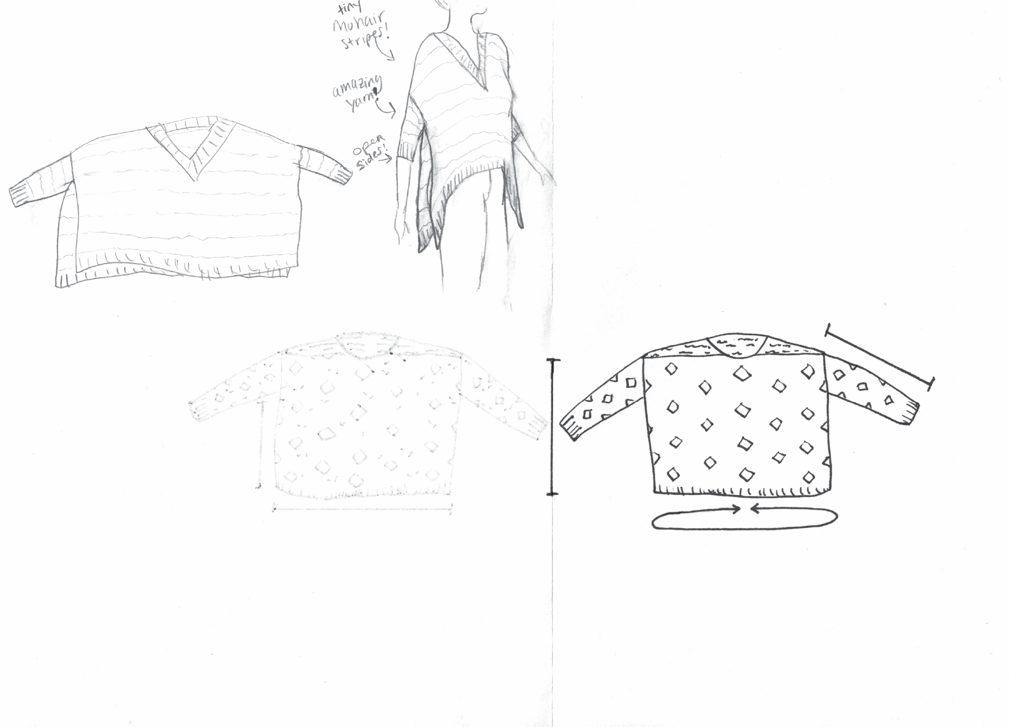 In 2019 I was honored to create schematic drawings for a popular knitting pattern designer, who goes by the handle @WoolJewel on Instagram, Youtube, and the popular knitting website Ravelry. Knitters use these images embedded in the pattern layout to understand the exact measurements of the finished garment they will produce, helping them to choose a size and make alterations based on their own body’s measurements. As a former professional costume designer and fellow knitter, this was a project whose market I was intimately familiar with and uniquely qualified for. I produced the finished drawings below with both a knitter’s and an artist’s eye.